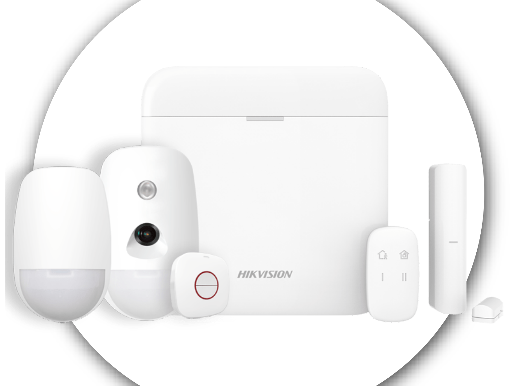 Installation du système sans fil AX PRO, contrôle intelligent avec système évolutif, détecteurs tous types, pavé numérique, sirènes intrusion et incendie, contrôle de vue en direct et à distance.